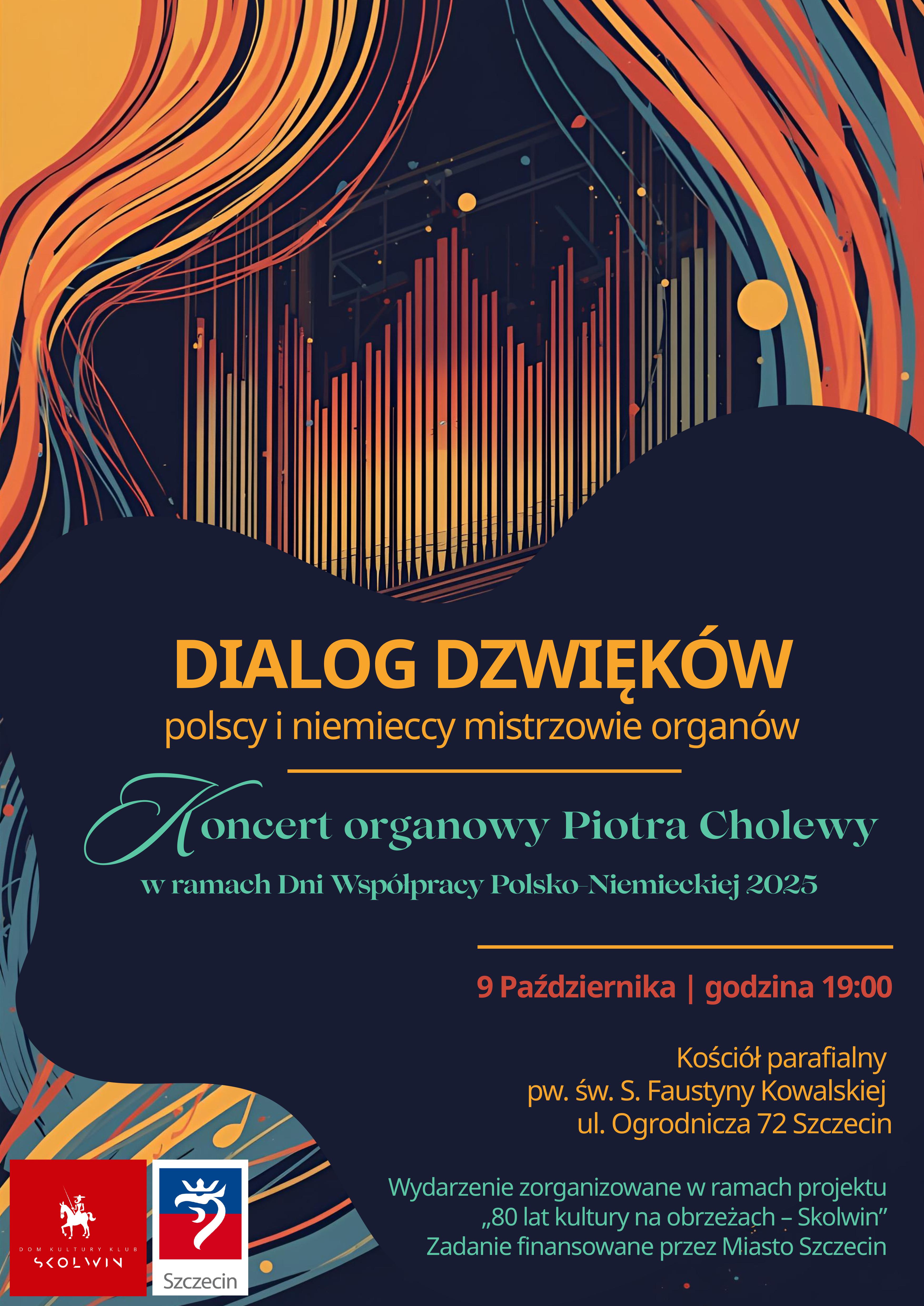 Zapraszamy na koncert organowy Piotra Cholewy, który odbędzie się w dniu 9 października o godzinie 19:00 w kościele parafialnym przy ulicy Ogrodniczej 72. Koncert jest organizowany w ramach Dni Współpracy Polskiej i Niemieckiej 2025